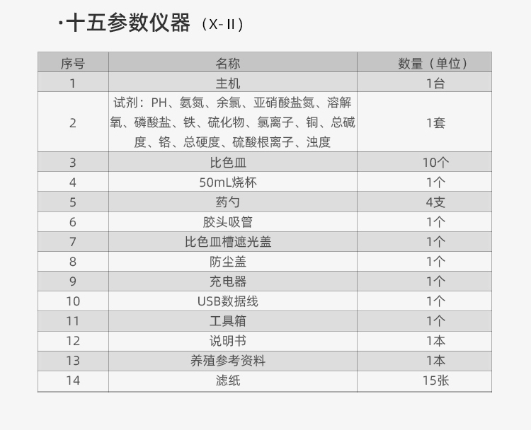 專業(yè)應(yīng)用于檢測(cè)水產(chǎn)養(yǎng)殖水質(zhì)指標(biāo)的專業(yè)儀器 12項(xiàng)檢測(cè)指標(biāo)(余氯 亞硝S酸鹽 氨氮 溶解氧等等)涵蓋了水產(chǎn)養(yǎng)殖中水質(zhì)檢測(cè)的基本要求。該儀器主要優(yōu)點(diǎn)數(shù)據(jù)準(zhǔn)確、操作簡(jiǎn)單是國(guó)內(nèi)目前水產(chǎn)養(yǎng)殖行業(yè)內(nèi)性價(jià)比較高的便攜式水質(zhì)分析儀。它為科學(xué)的精細(xì)化水產(chǎn)養(yǎng)殖提供了最直接的工具。